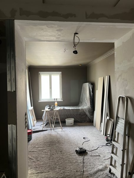 Profi-Anstrich: Wände und Decken werden deckend in hellem Weiß gestrichen.